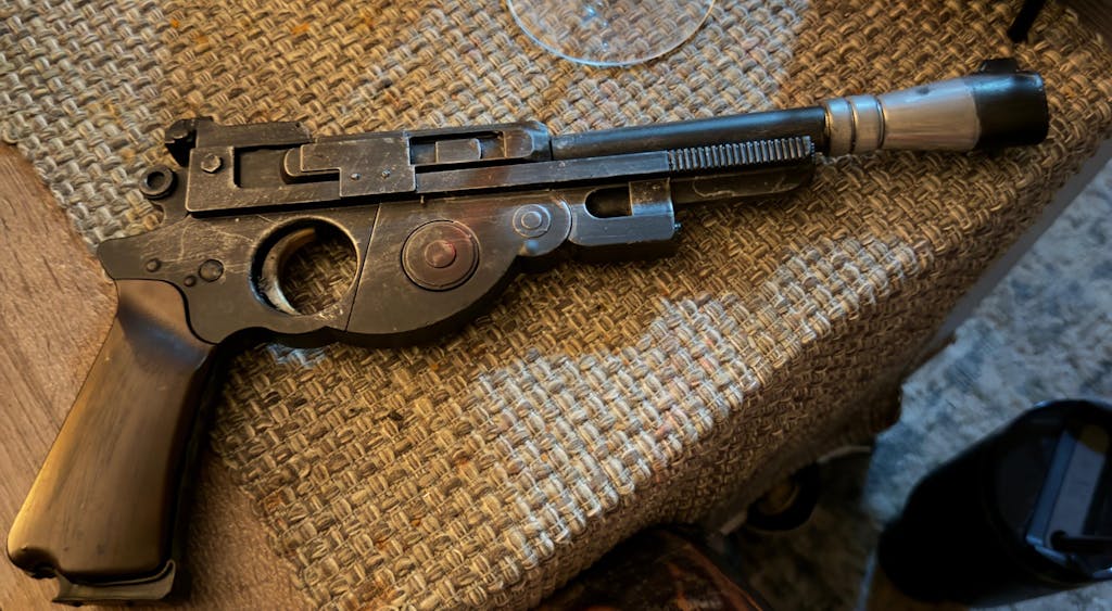 - Weathered to look like a blaster that’s seen real action in the Outer Rim